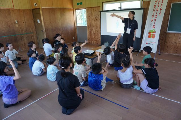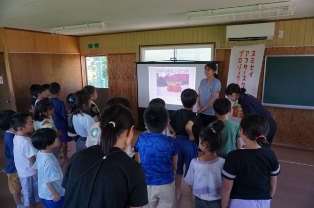 いよいよプログラムも終盤、姫芳先生への質問コーナーです。子どもたちからは「1日に何件訪問するんですか?」「包帯だけで治りますか?」「どんな病気が多いですか?」など、たくさんの質問が出てきます。