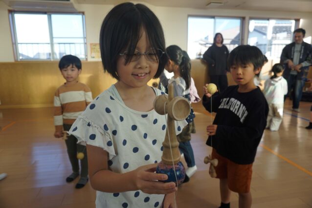 けん玉が得意な子も、そうではない子も、けん玉と仲良くなれた様子でした。